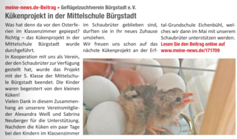 Richtig - das Kükenprojekt in der Mittelschule Bürgstadt wurde durchgeführt.